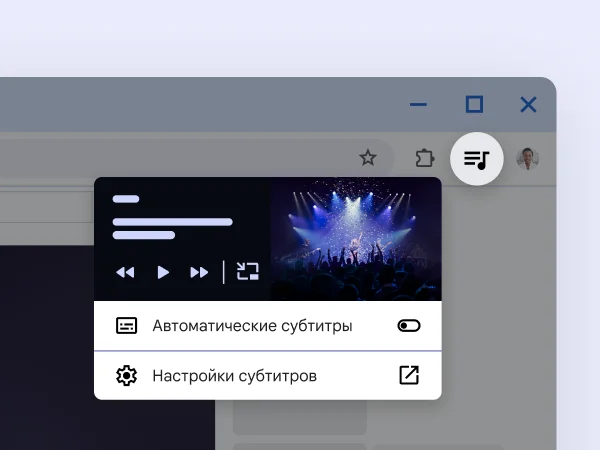 Браузер Chrome поддерживает лупы и программы чтения с экрана, а также позволяет изменять масштаб страницы и контрастность цветов. В нем есть различные полезные функции, например описание изображений с помощью ИИ, автоматические субтитры и режим активного курсора. Все это поможет пользоваться интернетом так, как удобно именно вам.